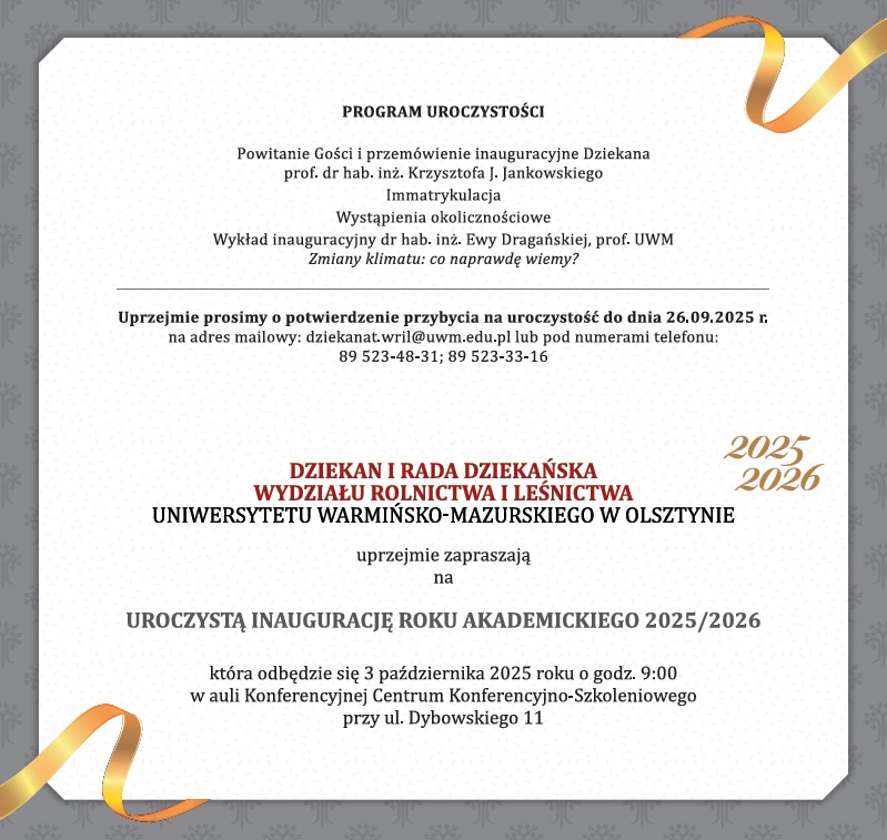 Pod patronatem Dziekana Wydziału Rolnictwa i Leśnictwa,